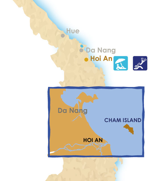 Cu Lao Cham island – Hoi An always attracts visitors by its untouched and breathtaking landscape. Cham island tour is impressive and charming to visitors who love adventures and challenges. The island is also a natural area with vast sky, boundless ocean and is a fresh biosphere reserve of the world. The island consists of 8 small and big islets including: Hon Lao, Hon Dai, Hon Mo, Hon Kho Me, Hon Kho Con, Hon La, Hon Tai, Hon Ong. A day tour to Cu Lao Cham including fishing and diving is one of the most interesting activities when visit Hoi An.