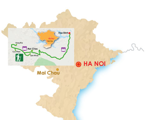 Breakfast at the hotel. Departure from Moc Hoa Binh Chau Plateau, through the magnificent landscapes, green hills of tea, ethnic villages and the beautiful valleys of Mai Chau. Arrival in Xa Linh, you affectuez hiking in the village Xa Linh, H’mong ethnic country that is in the mountains 800 meters above sea level. Lunch with the locals. Then you continue trekking through rice paddies, ethnic villages and streams to the village Hang Kia, the country of H’mong. Dinner and overnight at the inhabitant